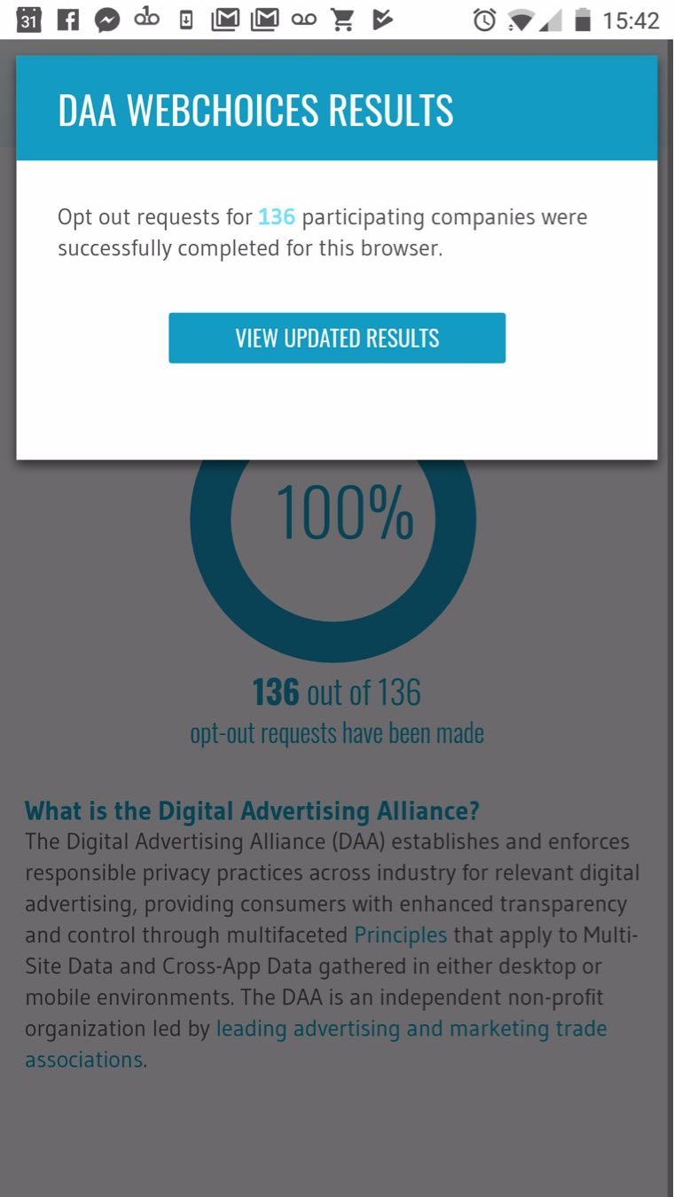 If you are experiencing issues with the functionality of either DAA consumer choice tool, then please visit the FAQ section of either WebChoices or AppChoices.